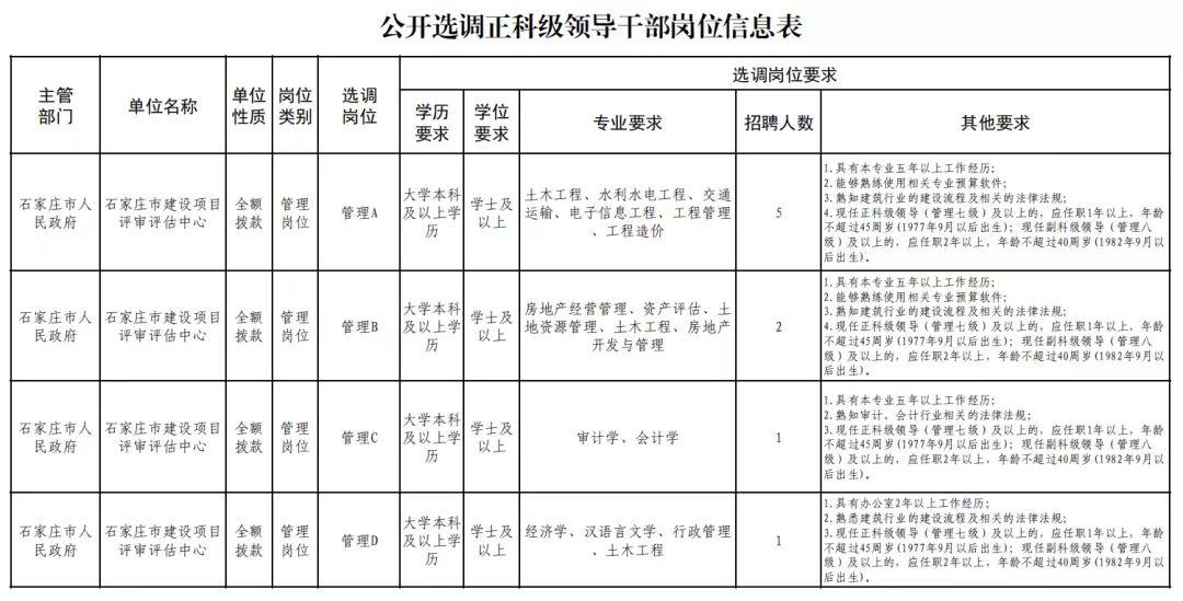 本次公开选调面向河北省各级机关(含参照公务员法管理单位)、事业单位正式在职在编人员。共选调正科级领导干部9名。