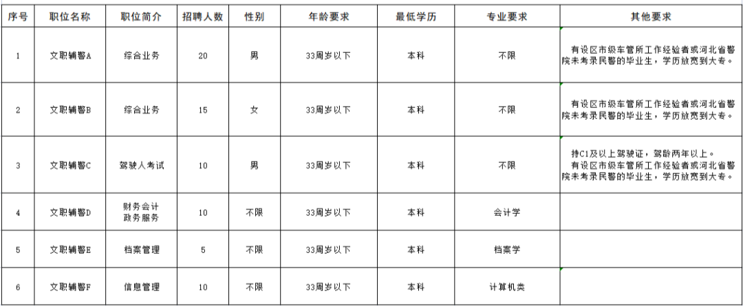 共招聘车管所警务辅助人员70名,详情请见《职位表》(见附件)。