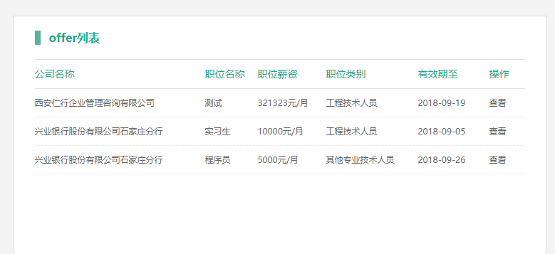 点击左侧“offer 列表”按钮,进入此页面,会显示所有企业发送的 offer 信