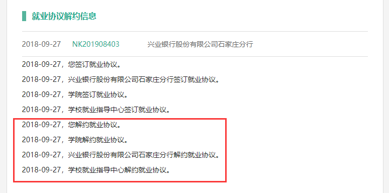 学院在就业协议列表,可以审核本学院学生提交的解约申请。
