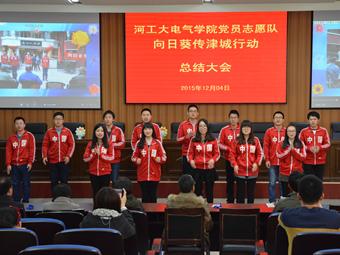 2015年12月4日,“向日葵•传津城”党员志愿服务队总结大会在402永利集团官网入口科技报告厅举行,志愿队所有成员和学院党委老师共同参加了此次大会,一起分享了奉献的爱心和收获的感动。“向日葵•传津城”党员志愿服务队是一支拥有无限关怀的志愿队,一名名党员志愿者像沐浴在阳光下的“向日葵”,传递着对老人的爱心和关心。