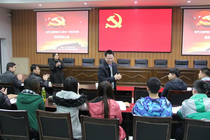 12月10日晚,402永利集团官网入口13级本一学生党支部党员组织发展大会在东院科技楼报告厅举行,校党委常委杨玉桢同志、学院领导及组织部王建昆同志一起出席了大会。