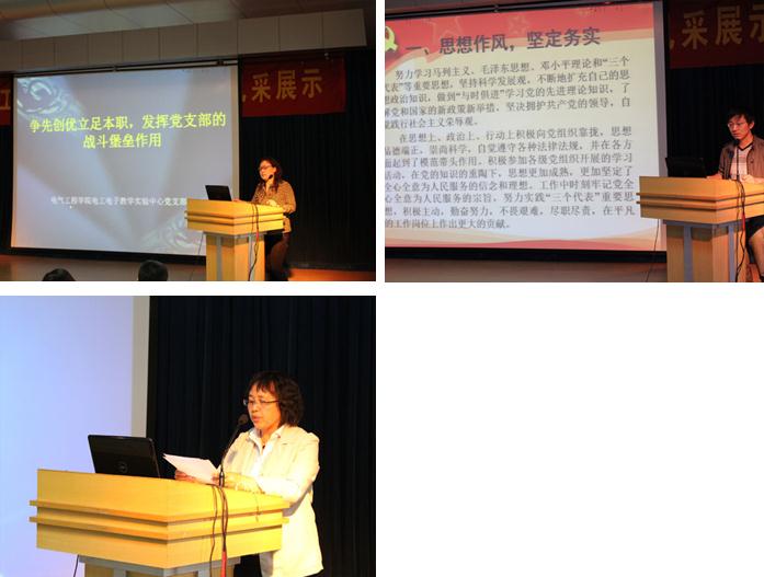 此次活动共有各支部推荐的10名教工优秀党员和2个教工先进党支部参加评比展示。首先,平熙副书记对此次活动的意义和组织做了简要介绍,并对评比标准和规则进行了说明。接下来,2个教工先进党支部、10位优秀党员候选人和优秀党务工作者依次做了风采展示,展示结束后,在座的全体党员投票选出4名优秀党员向学校党委推荐。