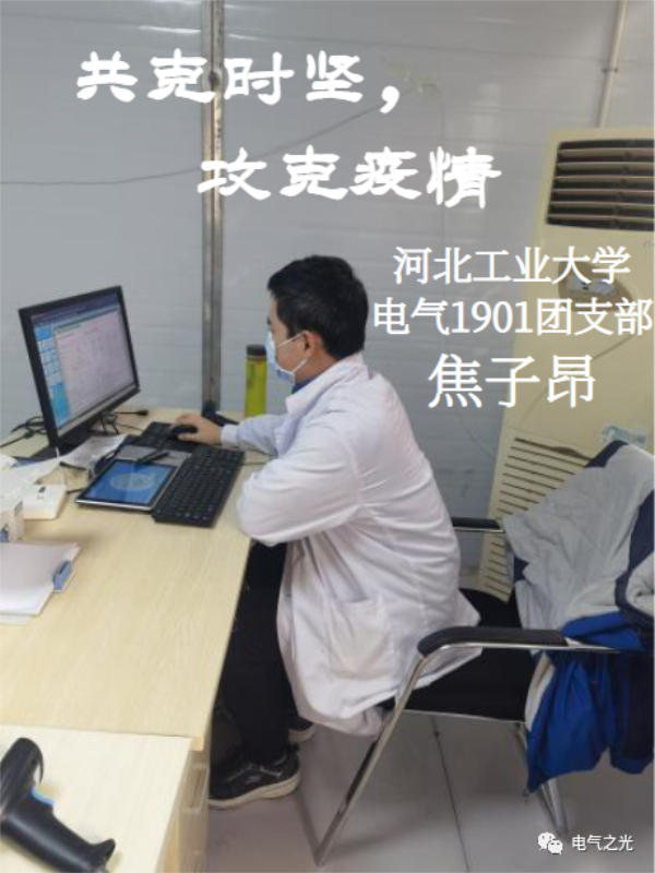 疫情突如其来,我们都毫无准备。仝琪作为电气学院的一名本科学生,积极参加了一项志愿者活动。他深入社区、公共场所,协助工作人员检测体温、出入人员登记,入户摸底清查,整理相关表格资料,上门为居民们填写信息表、为居家医学观察户取快递、购买物品,关爱抗疫一线医护人员家庭子女和老人,做好心理辅导、亲情陪伴、学业辅导。同时还为大家做宣传,“少聚集,不扎堆,勤洗手,做好防护”几乎成了他这些天最常说的话。