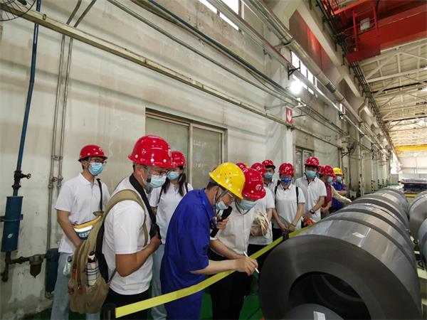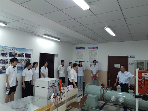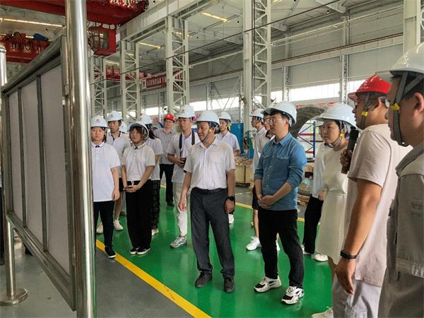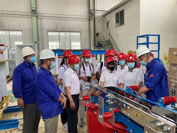 7月4日下午,调研团走访保定天威保变电气有限公司,工作人员带领调研成员参观了变压器生产车间。一系列超大型变压器、超新型变压器等输变电设备让同学们深受震撼,大开眼界。随后,在工作人员带领下,调研团来到保变电气输变电技术研究院。该研究院为河北省高压设备智能化及故障模拟重点实验室(筹),在此,双方共同探讨“双碳”背景下输变电设备技术方案和协同人才培养,并举行校企联合实习实践基地挂牌仪式。
