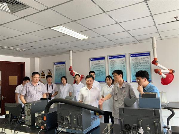 7月4日上午,实践团一行来到河北保定,走访保定华创电气有限公司。双方召开座谈会,就科技创新、校企联合等事宜充分交流,并签署协议共建大学生实习实践基地。随后,实践团一行来到河北软件职业技术学院智能检测技术研究所,校友刘大永总经理一行亲切接待,带领调研团队参观智能检测技术实验室、展览馆。刘经理对研究所的先进技术如数家珍,让同学们受到深刻触动。调研团2020级电气工程及其自动化专业学生冉浩威表示,“一次参观比学校一学期学到的都要多”。