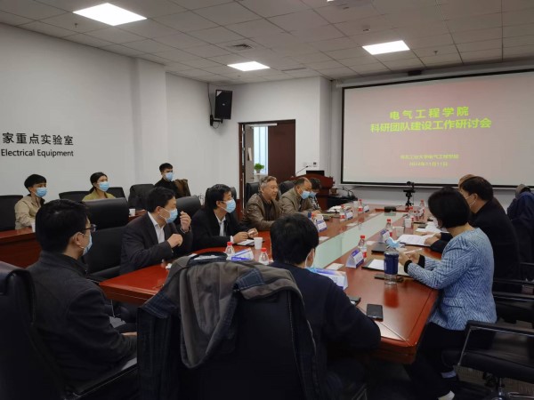 赵丽滨教授首先就学院推动有组织科研的顶层设计、实施路径、保障体系建设工作与学院领导班子进行交流,顾军华院长对相关的问题进行说明。针对学校国家“双一流”建设工作指出,电气学院、机械学院、材料学院、智能学院须加强科研团队的广泛交流,推动深度合作,共同把学科建设推上一个新的水平。