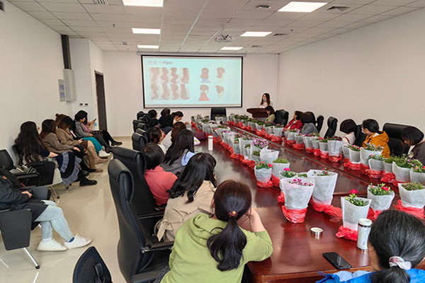 活动在学院工会主席王志坤副书记大力支持和策划下开展。首先是郭嘉老师和张凯老师两位老师开设了“美妆美发小课堂”,生动形象的PPT让大家从皮肤分类、化妆步骤、妆后卸妆、日常防晒四个方面了解了很多日常美妆小技巧。通过现场的直观演示,让看似复杂的烫发也变得容易操作起来。大家在赏花的同时,看到从素颜到靓丽、逐步变美的两位“体验嘉宾”,不禁纷纷赞叹美妆美发带给人气质、样貌的蜕变和升华。“通过这个课堂,我不仅学到了化妆和简单美发的技巧,也收获了美丽,收获了一份职业自信。”参加活动的女老师纷纷表示。