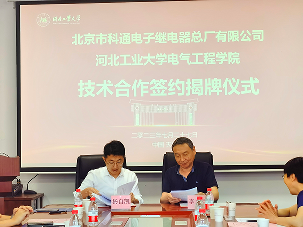 赵钢董事长指出,科通公司以生产固体继电器为特色,具有很强的核心竞争力,是国家高新技术企业和中关村高新技术企业。公司与河北工业大学有20年的合作历史,合作基础良好。通过此次签约授牌仪式,将校企合作推进到一个新的更高的水平。
