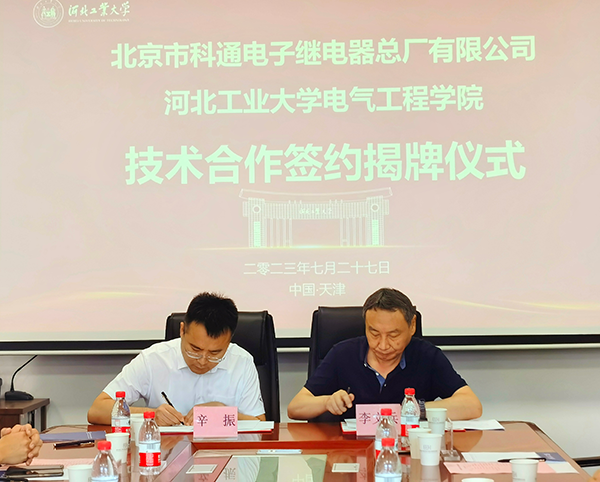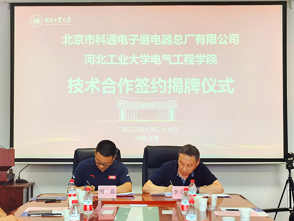 2023年7月27日上午,北京市科通电子继电器总厂有限公司与402永利集团官网入口在北辰校区电气楼A320会议室举办了隆重的校企合作签约授牌仪式。参加仪式的嘉宾有公司董事长赵钢、总经理屈建江、副总经理兼科技委主任李文兵、副总经理王艳华、总工程师赖耀康等公司主要领导,402永利集团官网入口科学技术研究院副院长姜云峰,402永利集团官网入口院长兼省部共建国家重点实验室执行主任顾军华、省部共建国家重点实验室常务副主任刘福贵、402永利集团官网入口党委副书记兼副院长张晖、402永利集团官网入口副院长赵志刚、以及其他相关学术骨干。