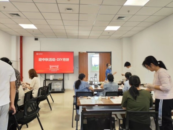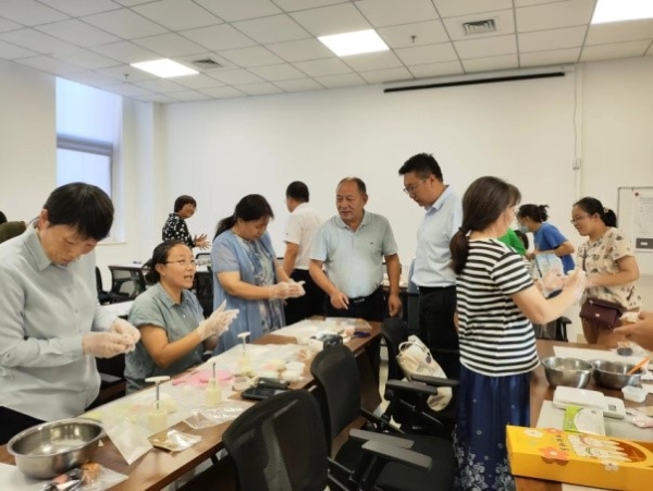 在月饼制作活动室,学院工会准备了丰富的月饼DIY材料,如月饼模具、糕点粉、馅料、礼盒等。糕点师耐心地向老师们介绍DIY的步骤和注意事项,并提供帮助和指导。老师们亲手揉面、搓圆、包馅,每个人都希望能够亲手制作出一款独一无二的月饼,活动现场充满了欢声笑语。