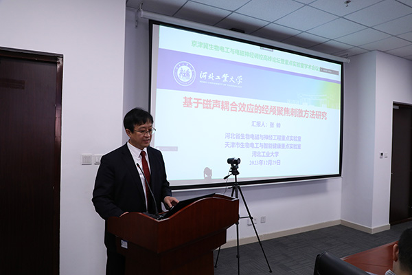 随后,重点实验室主任徐桂芝教授围绕实验室建设意义、研究方向及成果、人才队伍情况、未来发展目标几方面作实验室2023年度工作报告。重点实验室副主任张帅教授、副主任郭磊教授分别就“基于磁声耦合效应的经颅聚焦刺激方法研究”、“具有生物可解释性的类脑模型鲁棒功能研究”作了学术报告。