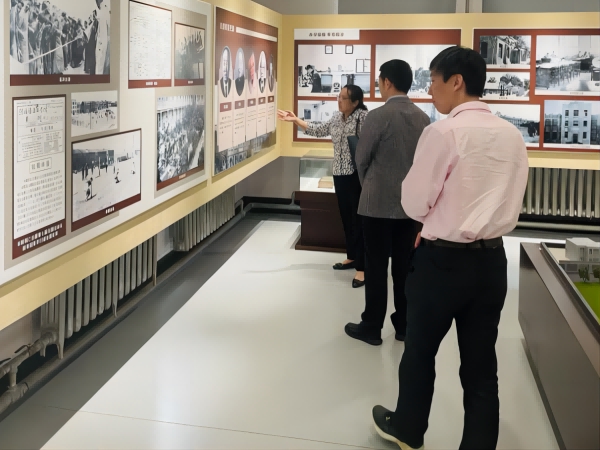 会议结束后,徐桂芝教授带领刘定新教授和王雄副教授参观了402永利集团官网入口校史馆。徐桂芝教授担任临时校史讲解员,介绍了402永利集团官网入口从近代始至今的百廿余年历史,工学并举的历史传承。