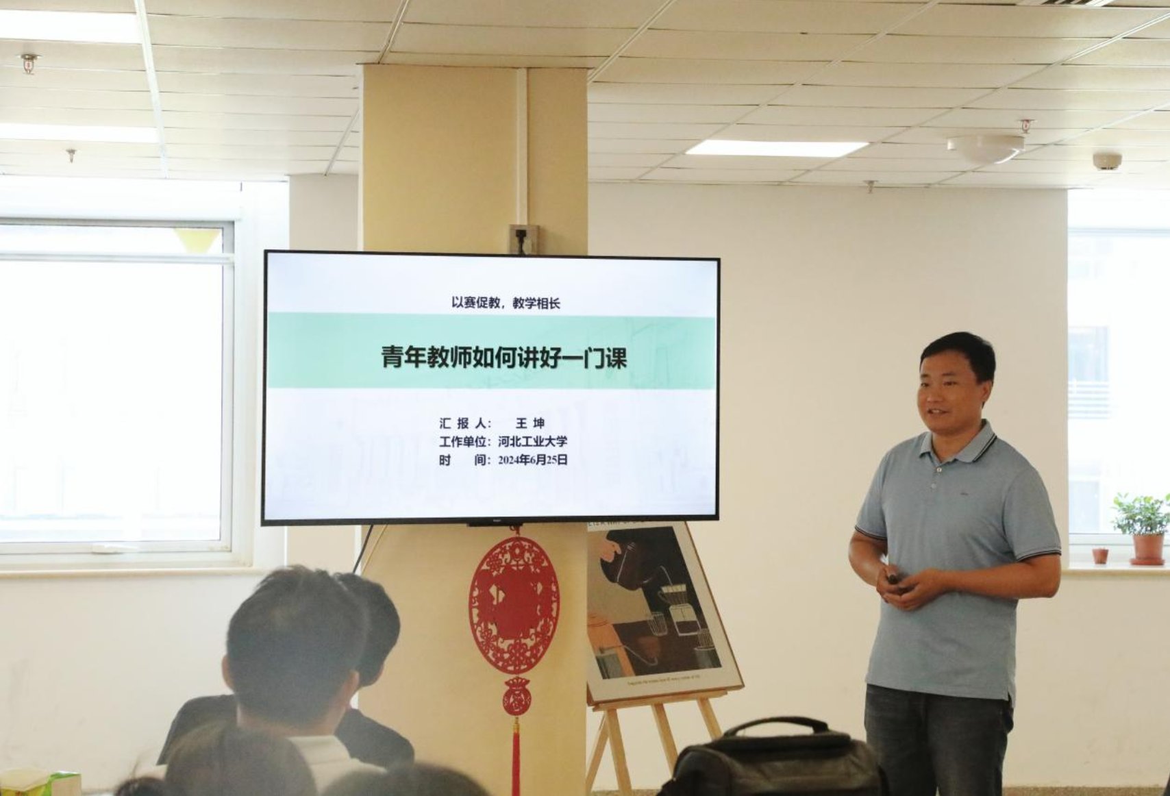 王坤副教授的分享引起了现场老师们的热烈反响,老师们积极参与提问,王坤副教授耐心解答,现场气氛热烈融洽。他强调了在准备教学竞赛时要注重教学设计、教学内容和教学方法的创新性,同时要注重与学生的互动和沟通,确保教学效果的最大化。老师们纷纷表示,这次活动不仅学到了很多实用的教学技巧和方法,还提供了一个交流学习的平台,能够相互学习、共同进步。