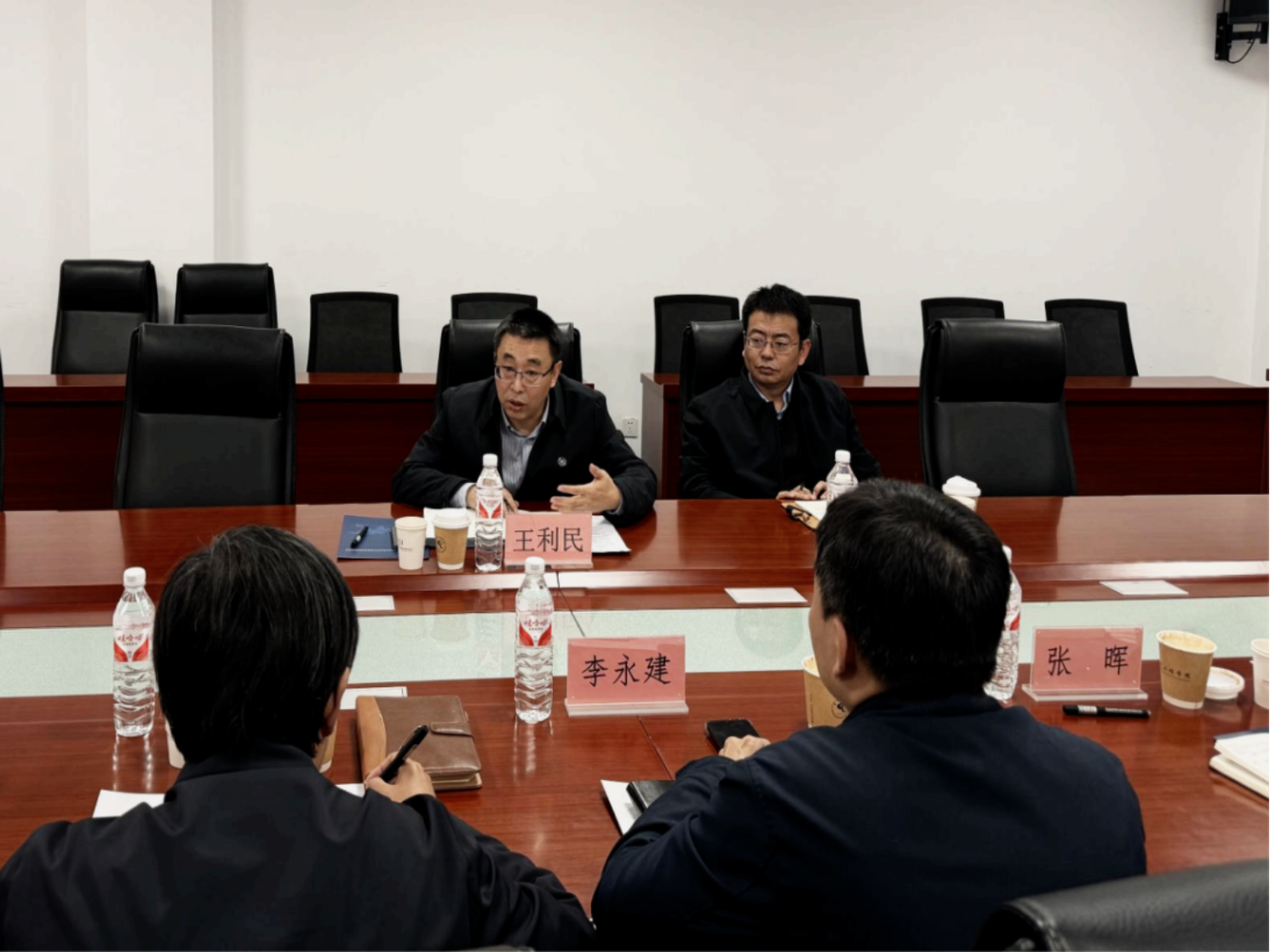 最后,王利民校长围绕学院未来的发展方向和战略规划与学院领导班子做了深入探讨,并提出了希望和要求:一是聚焦学科内涵发展,不断提升学科竞争力;二是加大科研创新力度,推动产学研深度融合,促进科技成果转化;三是加强师资队伍建设,引进和培养更多高层次人才;四是注重学生实践能力和创新精神的培养,为社会输送更多优秀人才。