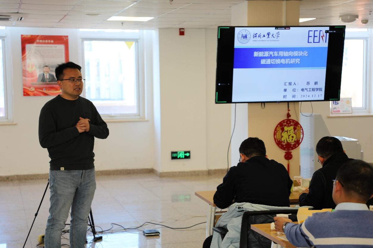 在本次沙龙中,苏鹏副教授以“新能源汽车用轴向模块化磁通切换电机研究”为题,提出了传统永磁电机面临的技术瓶颈,系统阐述了新型永磁电机的研究背景、研究内容及研究方向。苏鹏副教授详细讲解了新型永磁电机的研究内容,从电磁特性研究、定位力矩抑制、新型拓扑研究等方面进行了细致阐述。接着,他分享了自己在永磁电机的设计与优化方面的创新方法和取得的研究成果。苏鹏副教授的报告逻辑严谨、聚焦前沿,为青年教师的科研探索提供了思路与启示。
